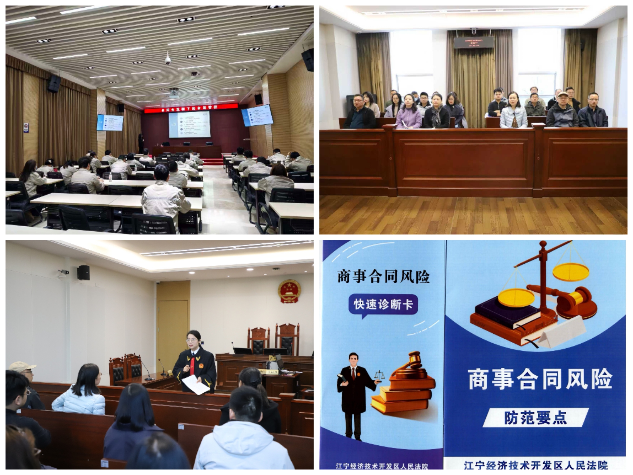 12月3日,邀請北京安理(南京)律師事務(wù)所胡曉玲律師開展《合同全流程下的合規(guī)管控》專題講座,重點面向市場營銷、物資采購等業(yè)務(wù)部門人員,圍繞合同簽訂、履行、變更及風險防范等環(huán)節(jié)進行系統(tǒng)講解,并結(jié)合典型案例剖析合規(guī)要點。12月10日,赴江寧經(jīng)濟技術(shù)開發(fā)區(qū)人民法院旁聽一起買賣合同糾紛案件庭審。庭審中,大家全程專注觀摩了法庭調(diào)查、舉證質(zhì)證、法庭辯論等環(huán)節(jié),真切感受到司法程序的嚴謹。庭審結(jié)束后,法官結(jié)合案件審理情況,對合同糾紛中常見的證據(jù)保存、履約瑕疵認定等問題進行了現(xiàn)場釋法,并發(fā)放了《商事合同風險防范要點》普法宣傳手冊。
