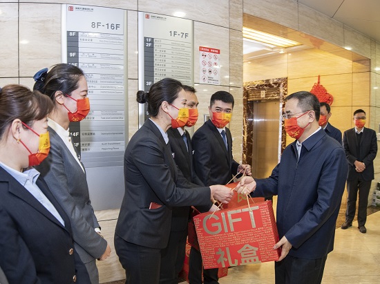 “新年好!大家辛苦了,感謝大家優(yōu)質(zhì)出色的服務(wù)!”在集團(tuán)公司總部一樓大廳,鄒磊首先向堅守崗位的物業(yè)值班人員致以節(jié)日的問候并為大家送上慰問禮物,對全體物業(yè)人員在過去一年中立足崗位全力做好各項服務(wù)保障工作,為集團(tuán)公司生產(chǎn)經(jīng)營工作順利進(jìn)行所作出的辛勤奉獻(xiàn)表示感謝。勉勵大家再接再厲,堅守服務(wù)品質(zhì),創(chuàng)新服務(wù)模式,以一流業(yè)績打造一流物業(yè)服務(wù)品牌。