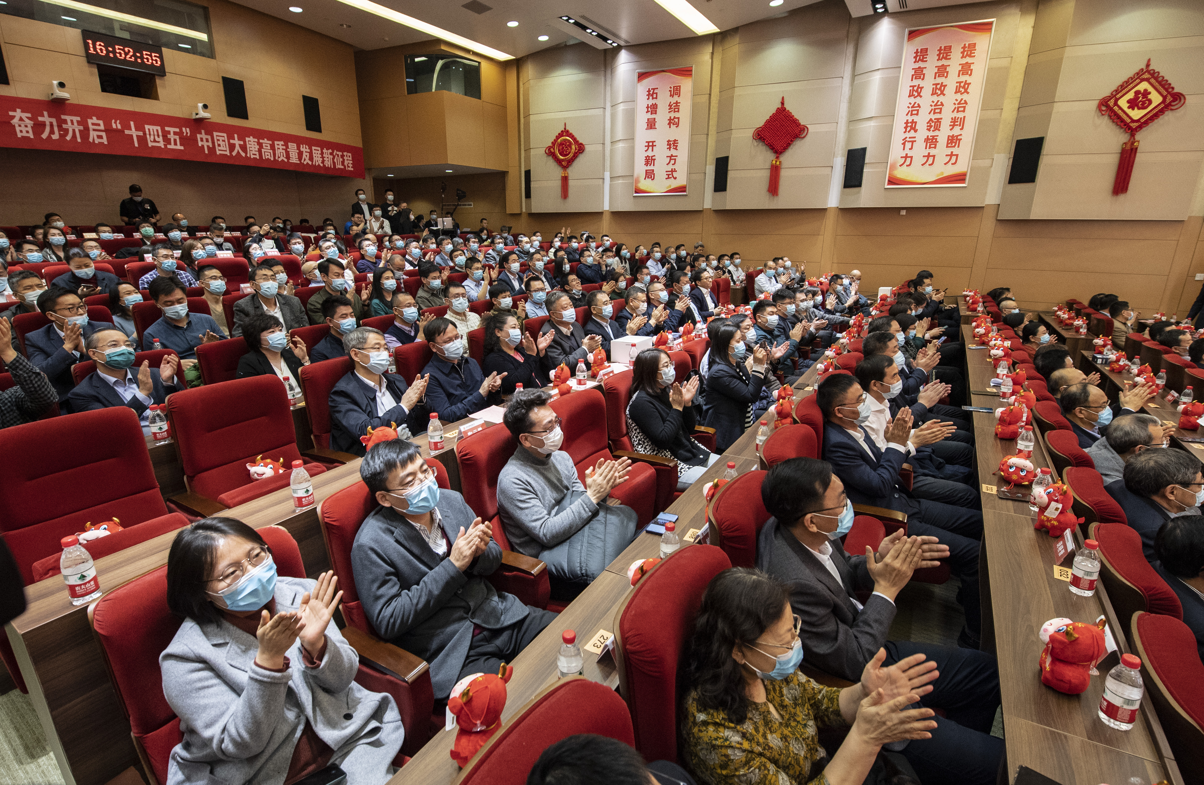 集團(tuán)公司領(lǐng)導(dǎo)鄒磊、時(shí)家林、劉廣迎、王瑛、曲波、張傳江、彭勇、陶云鵬與總部全體干部員工歡聚一堂,共迎新春佳節(jié)的到來(lái)。