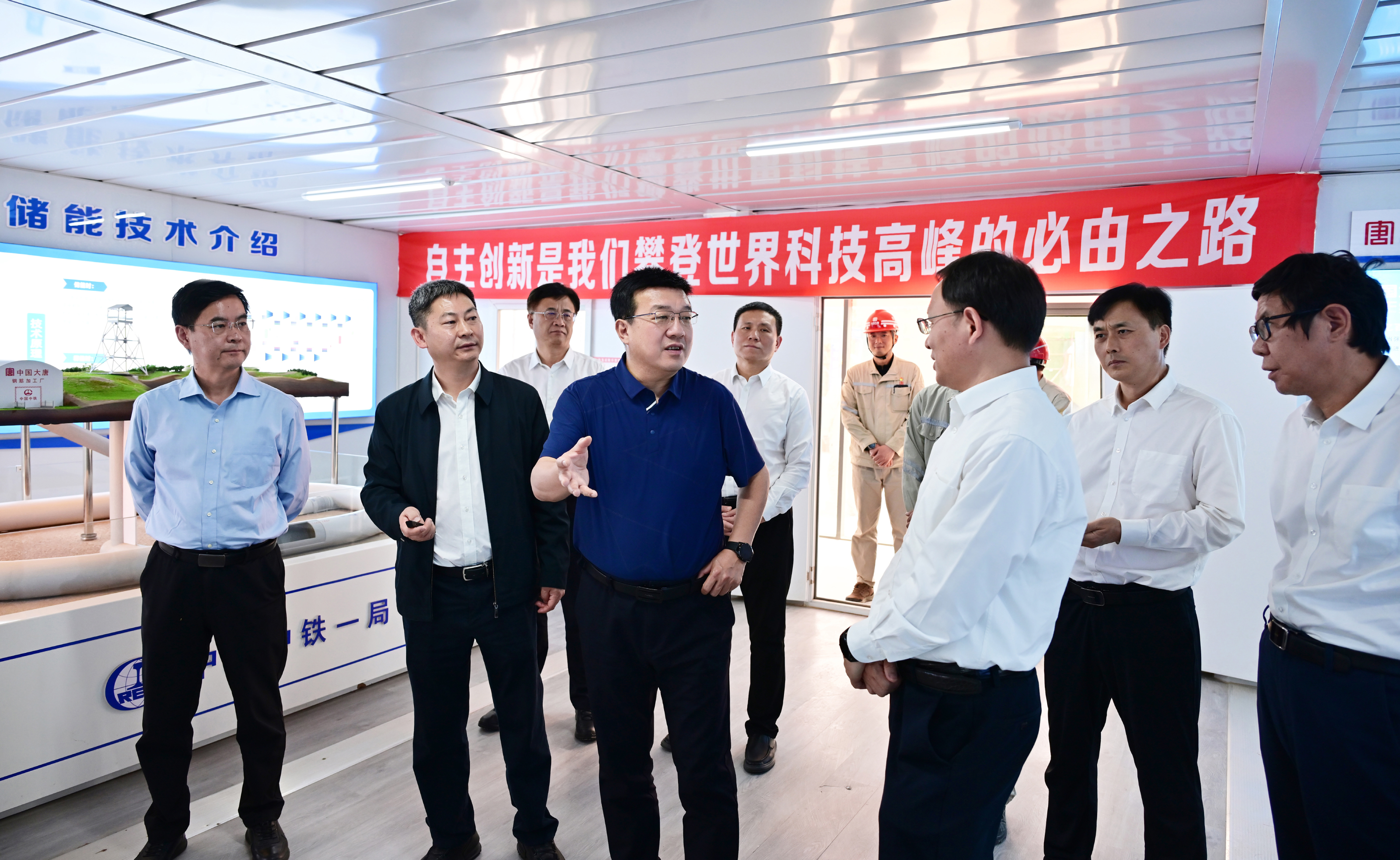 呂軍一行首先來(lái)到大唐寧夏中寧國(guó)際首套百兆瓦級(jí)全人工地下儲(chǔ)氣庫(kù)壓縮空氣儲(chǔ)能項(xiàng)目建設(shè)現(xiàn)場(chǎng),深入項(xiàng)目主廠房、信息化調(diào)度中心以及地下儲(chǔ)氣庫(kù)硐口,聽取項(xiàng)目介紹,詳細(xì)了解壓縮空氣儲(chǔ)能技術(shù)、施工進(jìn)度、技術(shù)創(chuàng)新等情況。