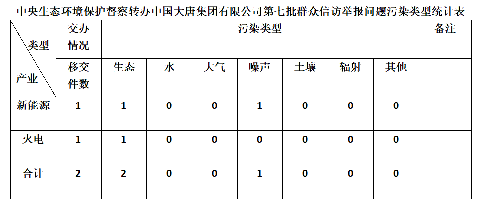 2025年6月10日,中央第七生態(tài)環(huán)境保護(hù)督察組向中國大唐集團有限公司移交第七批群眾信訪舉報件,共計2件,均為來電舉報,涉及噪聲問題1個、生態(tài)問題2個。所有舉報件辦理工作已第一時間進(jìn)入調(diào)查核實辦理程序,辦理情況將按照相關(guān)要求反饋督察組,并及時向社會公開。