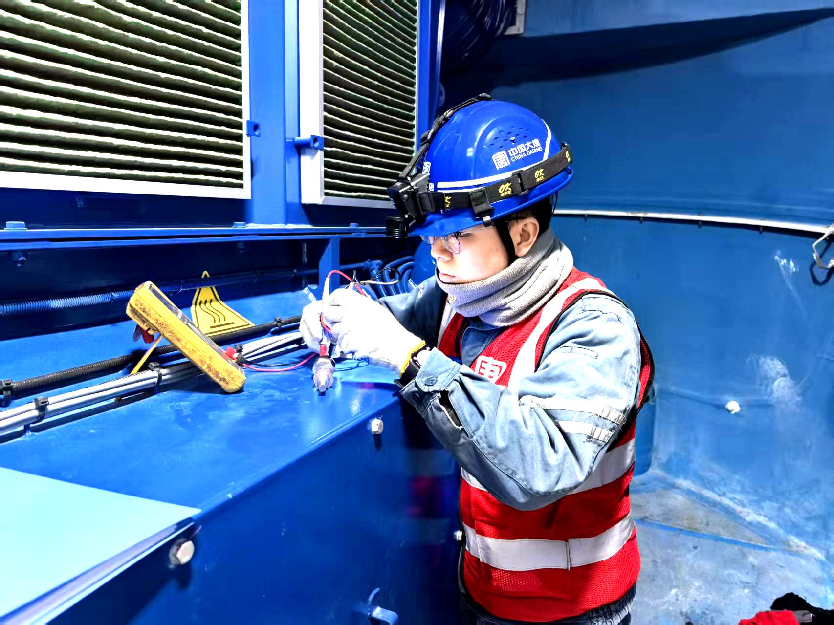 機(jī)艙蓋板剛掀開一道縫,凜冽的寒風(fēng)就像無數(shù)冰粒砸在臉上。他下意識側(cè)過身用胳膊護(hù)住口鼻,借著風(fēng)勢稍緩的瞬間猛地推開蓋板。頂著呼嘯的狂風(fēng),他順著機(jī)艙內(nèi)部爬梯穩(wěn)步挪到控制柜旁,迅速從工具包中掏出萬用表,“停電—驗(yàn)電—掛牌”整套安全流程一氣呵成,動作干脆利落,沒有絲毫拖泥帶水。