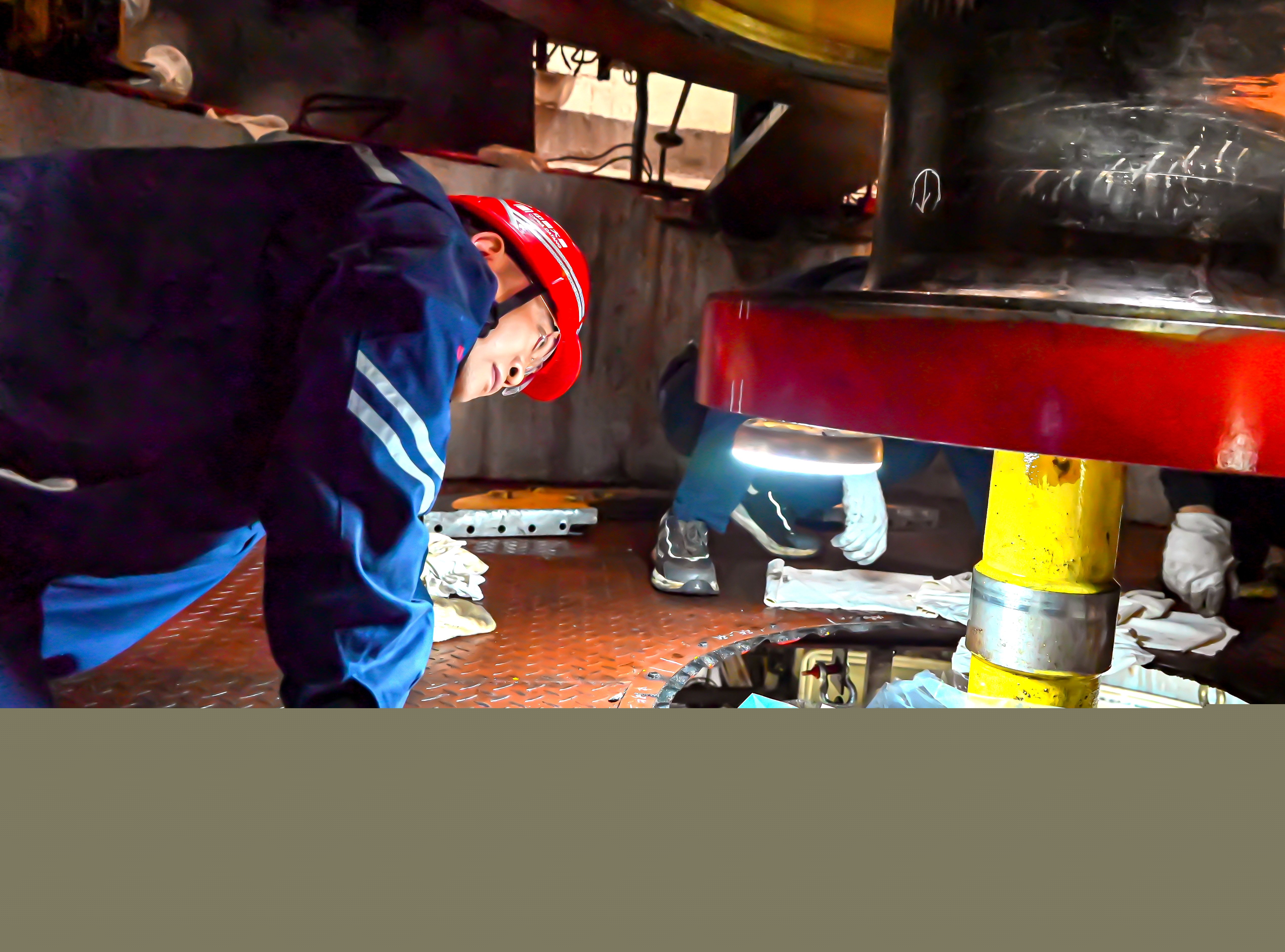 現(xiàn)場業(yè)主帶班人劉慶聞?dòng)?,立刻擠過人群,俯身仔細(xì)查驗(yàn)推力頭與鏡板的結(jié)合面。