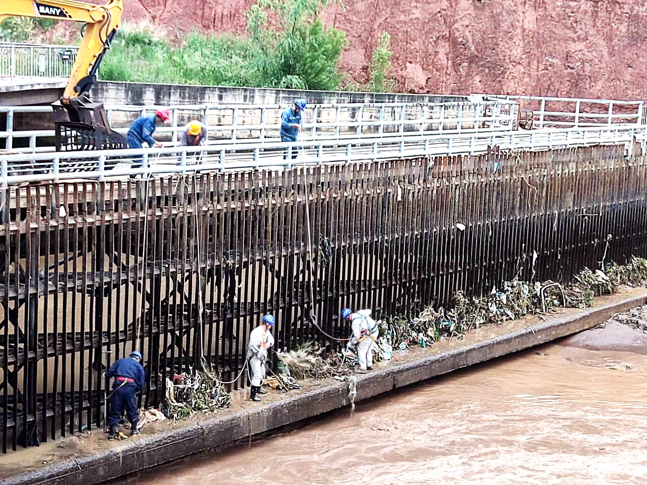 “站長,必須立即清污!”李寧抓起電話,聲音壓過雨噪。不到3分鐘,維護(hù)班班長林建平帶著7名隊員沖進(jìn)雨幕。撈渣機(jī)履帶轟鳴,他們要在洪峰到來前搶回每一滴水。