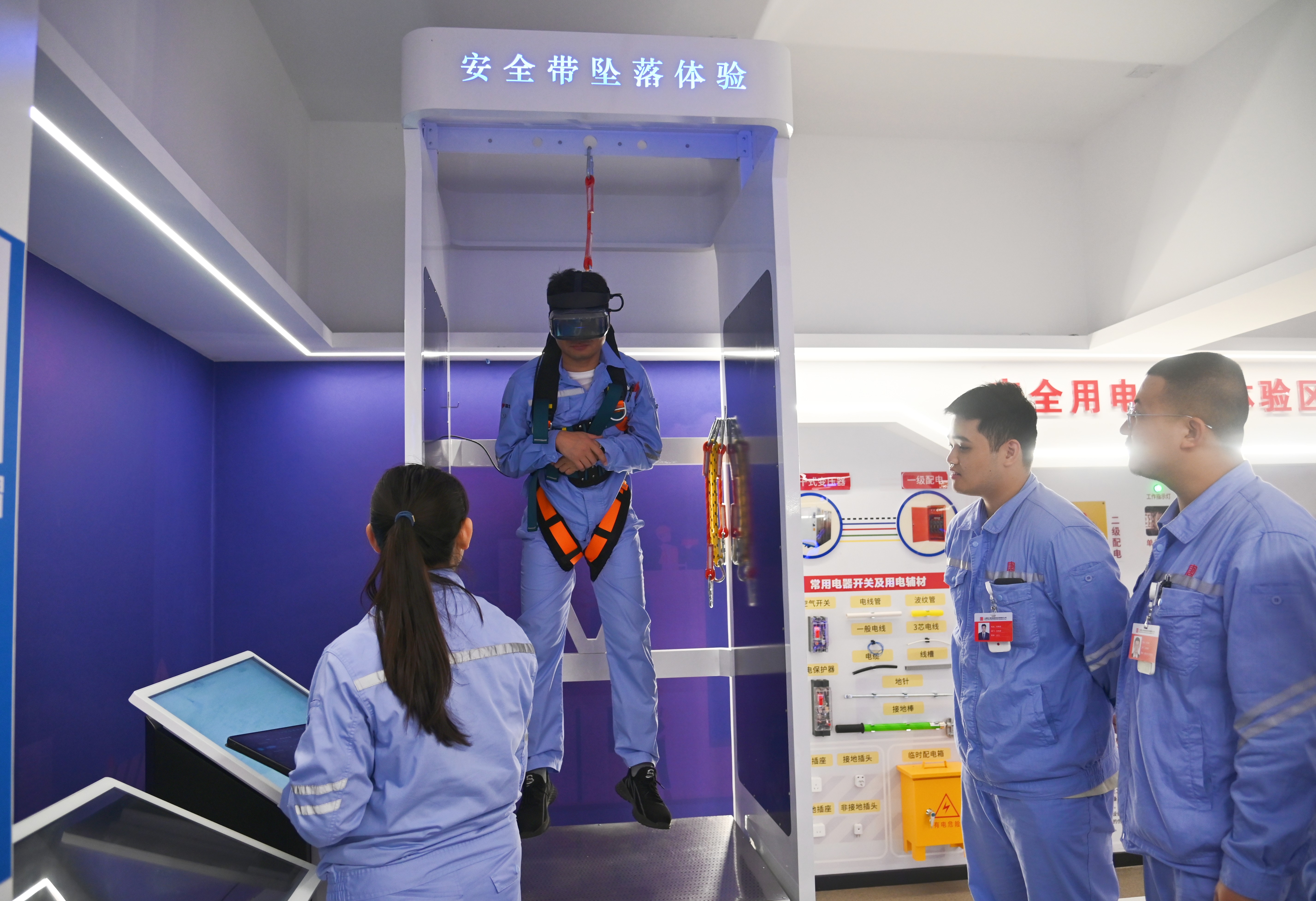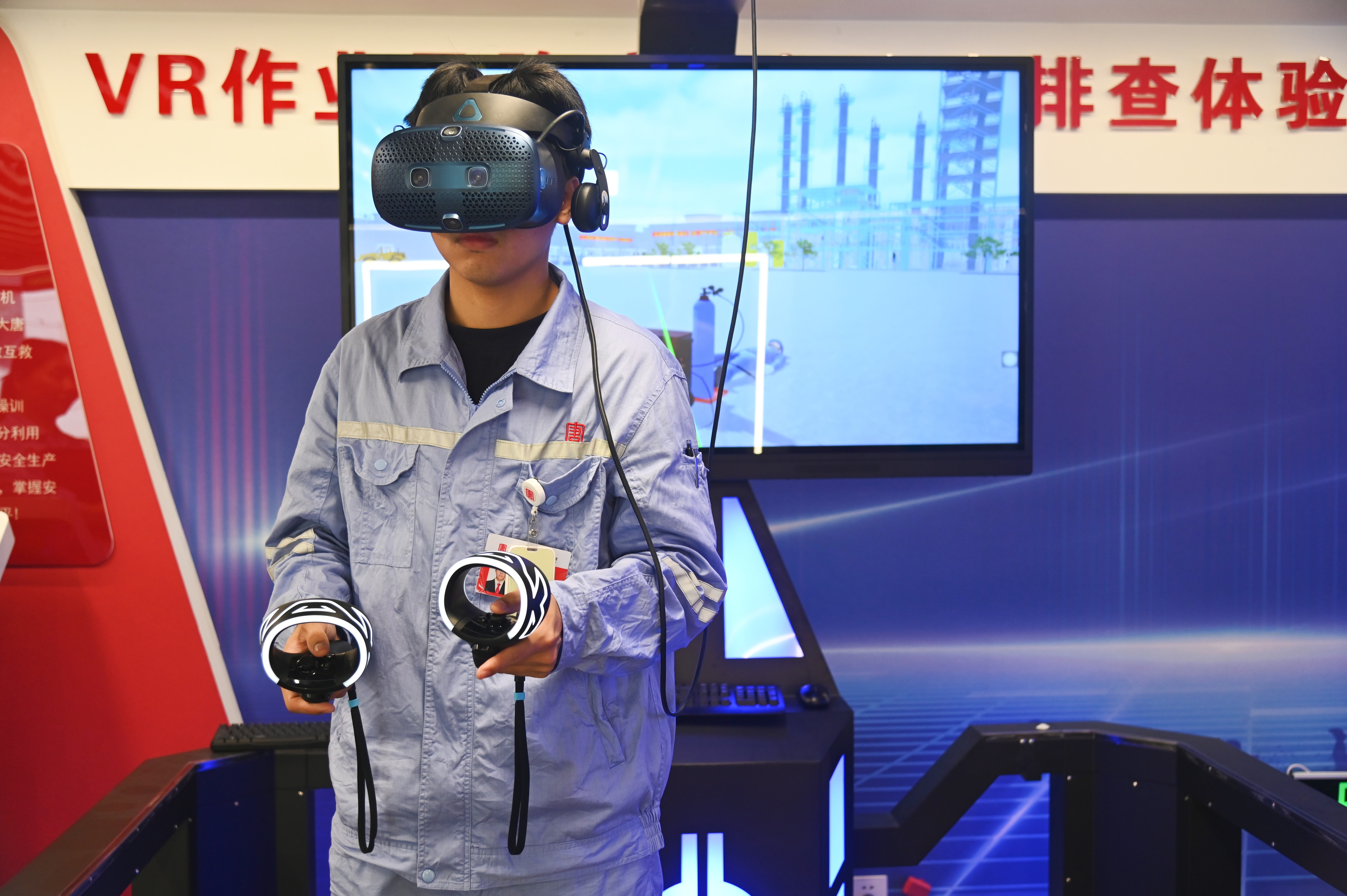 該中心設(shè)有人身事故體驗(yàn)區(qū)、作業(yè)風(fēng)險防控與隱患排查體驗(yàn)區(qū)、有限空間作業(yè)實(shí)訓(xùn)體驗(yàn)區(qū)、人身觸電體驗(yàn)區(qū)、安全防護(hù)用品體驗(yàn)區(qū)、應(yīng)急演練區(qū)、急救培訓(xùn)區(qū)等9個區(qū)域,采用視、聽、觸相結(jié)合的三維立體式培訓(xùn)模式,融合虛擬現(xiàn)實(shí)和多媒體互動技術(shù),模擬作業(yè)環(huán)境和事故場景。參訓(xùn)人員可以通過佩戴VR眼鏡,手持操作手柄,站立于動感體驗(yàn)平臺,對現(xiàn)場各類災(zāi)害事故進(jìn)行“零距離”體驗(yàn),提供可感受、可操作的實(shí)體化培訓(xùn),有效推動安全培訓(xùn)從傳統(tǒng)“說教式”向智能“沉浸式”轉(zhuǎn)型,進(jìn)一步深化和提升了安全管理水平,豐富了職工安全生產(chǎn)技能、應(yīng)急處置能力培訓(xùn)“套餐”,助力本質(zhì)安全型企業(yè)建設(shè)邁出重要一步。