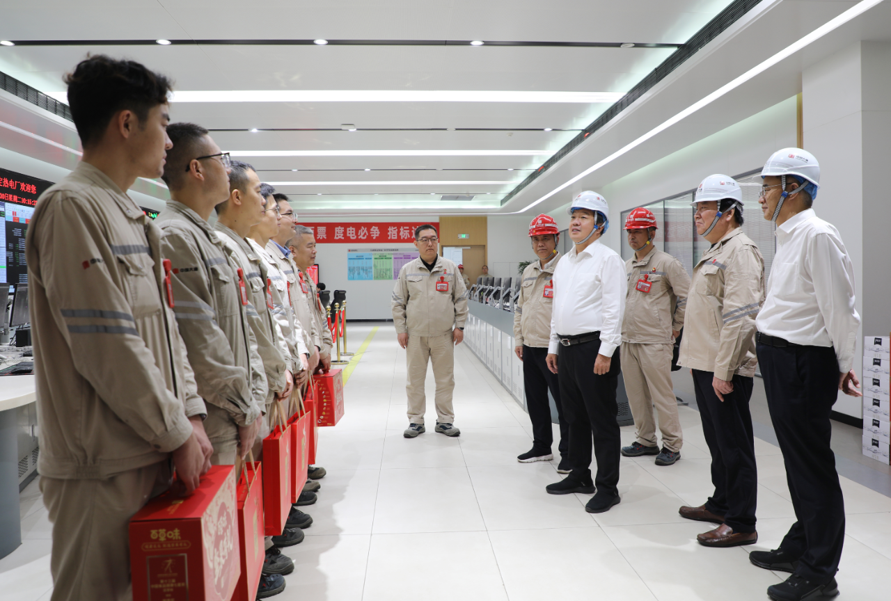 呂軍一行深入汽機(jī)平臺(tái)、集控室和廠史展示區(qū)等地,實(shí)地查看機(jī)組運(yùn)行狀況,詳細(xì)了解機(jī)組參數(shù)和保電工作安排,認(rèn)真聽(tīng)取企業(yè)發(fā)展歷程介紹、轉(zhuǎn)型發(fā)展及經(jīng)營(yíng)管理等情況。