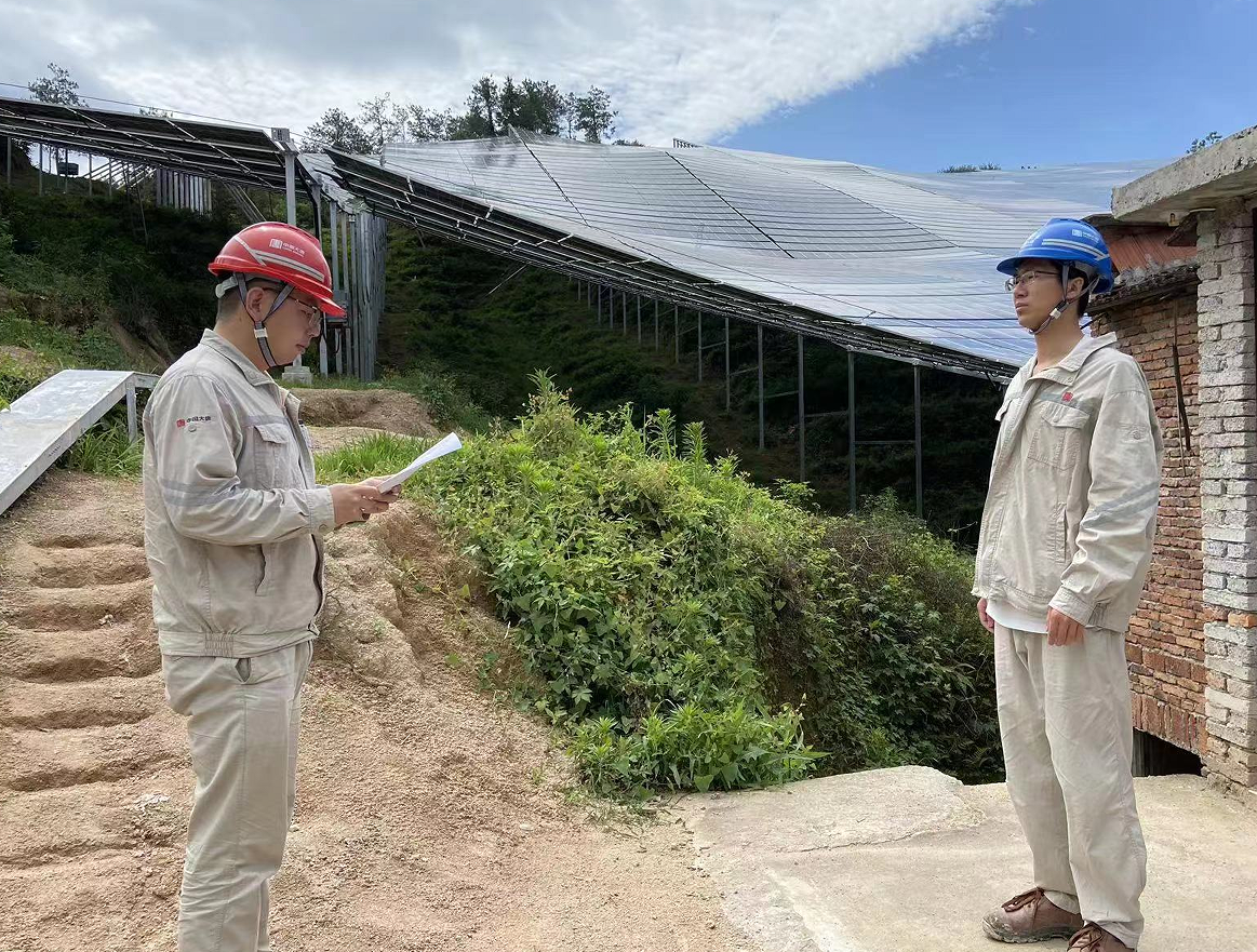 在馮剛帶領(lǐng)下,項目部成員大膽假設(shè),多方論證,決定使用柔性支架安裝方式,為山地光伏建設(shè)提供新方案、新思路。