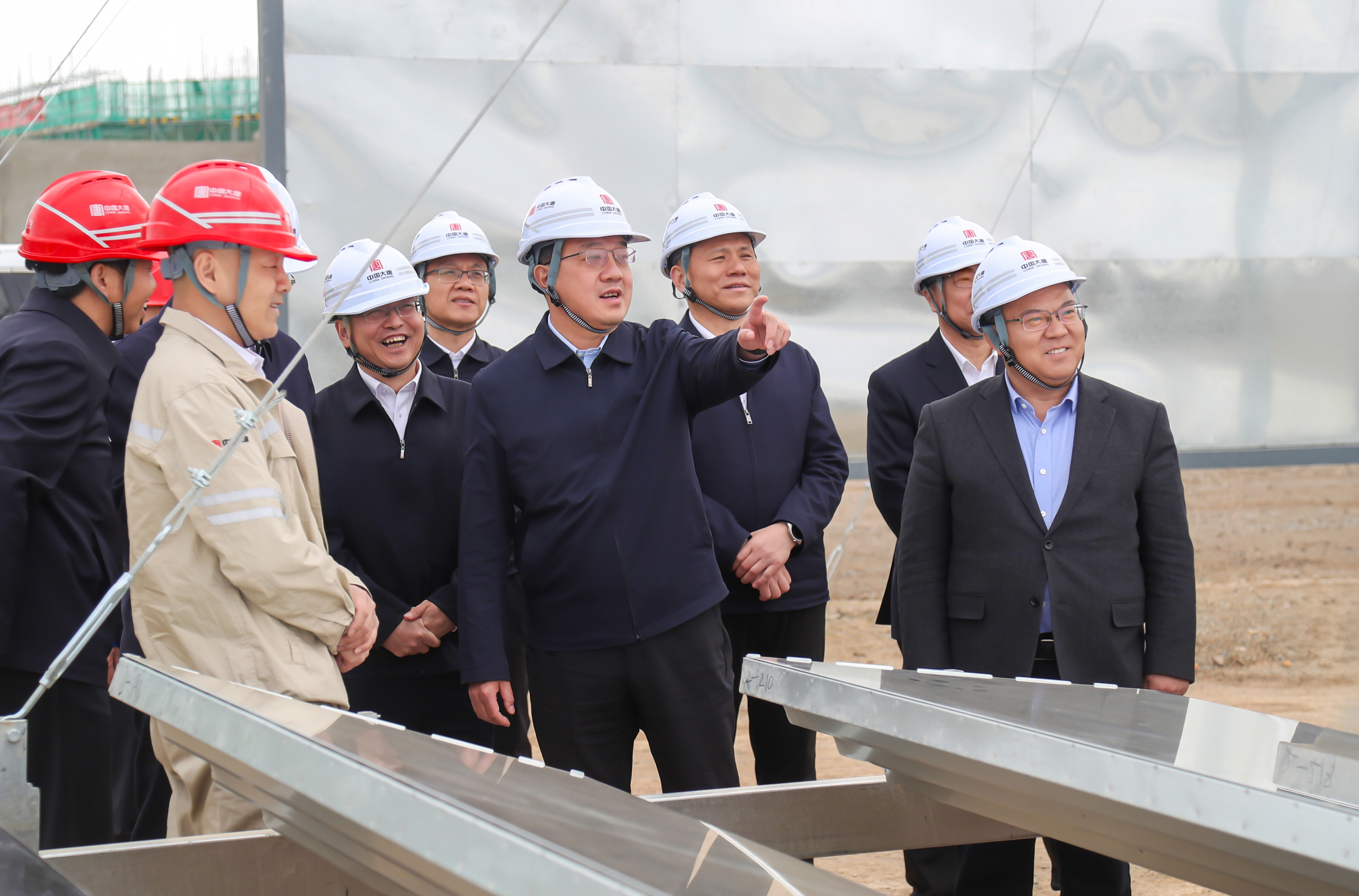 呂軍一行先后來到石城子一體化項(xiàng)目光熱施工現(xiàn)場(chǎng)、集熱鏡場(chǎng)區(qū)以及集熱鏡場(chǎng)關(guān)鍵件組裝車間,實(shí)地察看項(xiàng)目進(jìn)展,聽取相關(guān)工作匯報(bào),詳細(xì)了解一體化項(xiàng)目工程進(jìn)度、科技創(chuàng)新等情況。呂軍指出,石城子“光熱+光伏”項(xiàng)目是集團(tuán)公司首個(gè)百萬千瓦“光伏+光熱”一體化清潔能源示范項(xiàng)目,對(duì)于集團(tuán)公司進(jìn)一步推動(dòng)綠色低碳轉(zhuǎn)型、大力發(fā)展新興產(chǎn)業(yè)新業(yè)態(tài)項(xiàng)目作出了示范。